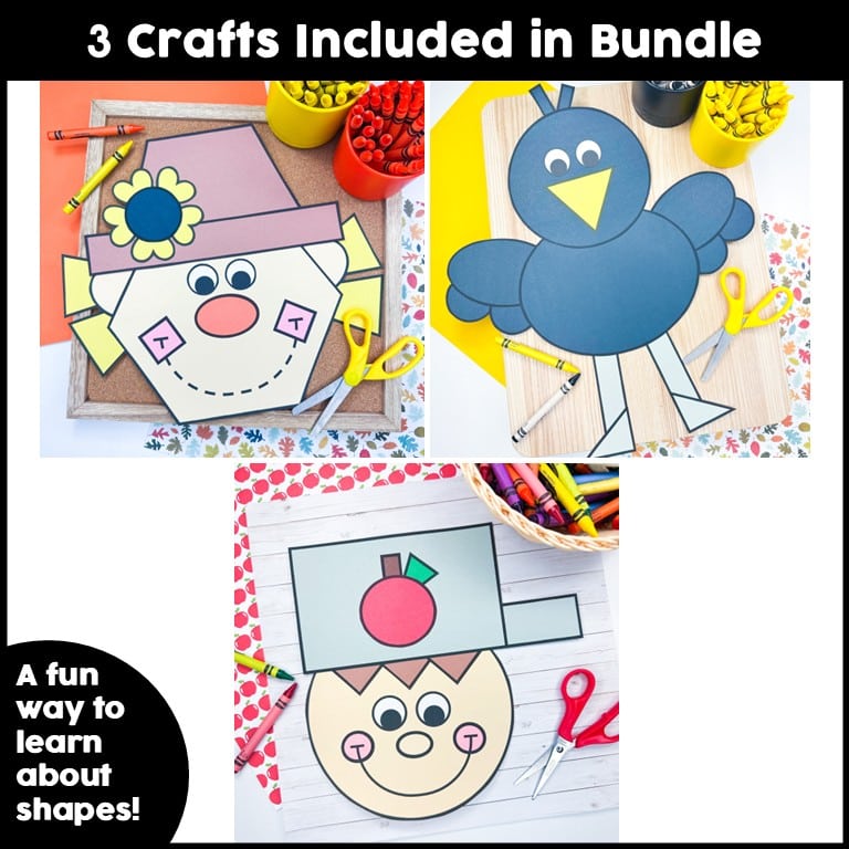 If you are looking for crafts for the fall months, this Fall Shapes Craft Bundle is the perfect fit! The easy to prep crafts include a Shape Crow, Shape Johnny Appleseed, and Shape Scarecrow Craft that your students are sure to enjoy. Patterns are kid-friendly and will keep your bulletin board festive all month long.